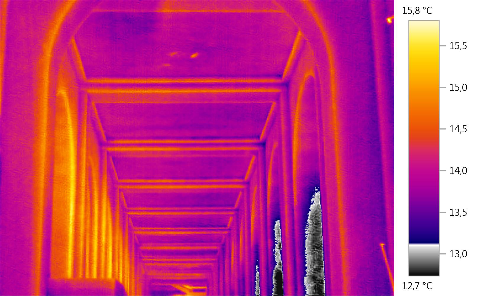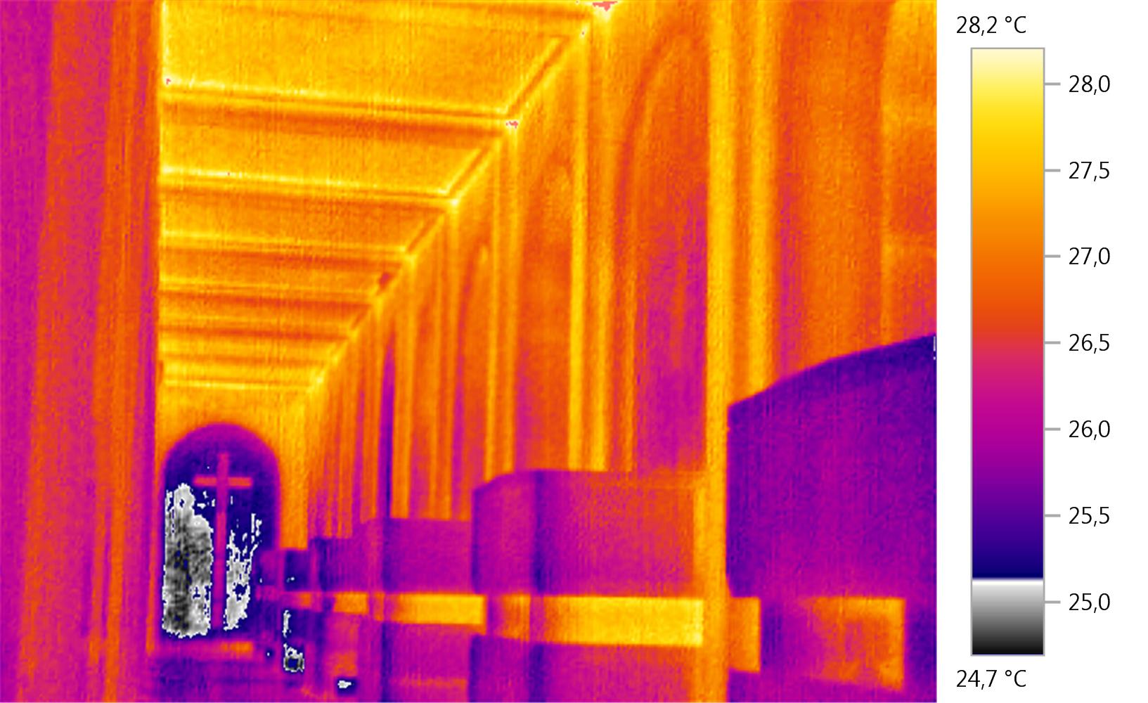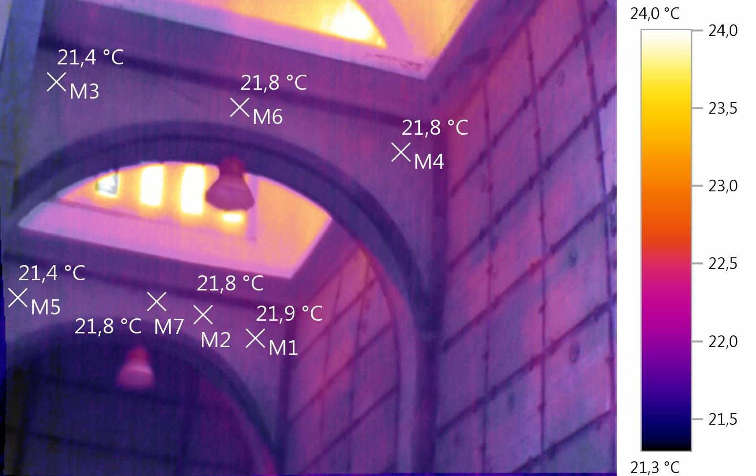 Studio delle patologie edilizie dei rivestimenti in pietra dei prospetti della Chiesa sita nel Cimitero Monumentale del Campo Verano appartenente alla Venerabile Arciconfraternita di Carità verso i Trapassati, e analisi ambientali interne dello stato termo igrometrico sui vari livelli. Analisi termografica per verifica dello stato di aderenza degli intonaci interni e dei rivestimenti in travertino esterni. Le analisi sono state eseguite nel tempo e le termografie nel transitorio termico e in piena irradiazione solare. All’interno della Chiesa sono stati installati dei termo igrometri per la verifica dello stato di temperatura e umidità dei vari livelli. Per quanto attiene alla termografia eseguita all’interno, è stato utilizzato, per il riscaldamento dei rivestimenti lapidei un cannone ad aria calda alimentato a gas. Termografia Arciconfraternita.